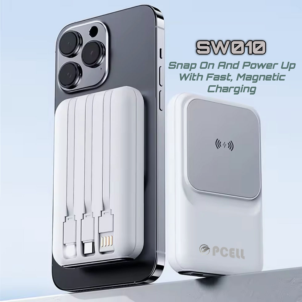 10,000mAh Mag Wireless Power Bank with Strong Magnet, Type-C Input, 22.5W Super Fast Charge, and 3 Wired outputs. Compatible with iPhone 12 and Above, Android, and Other Devices